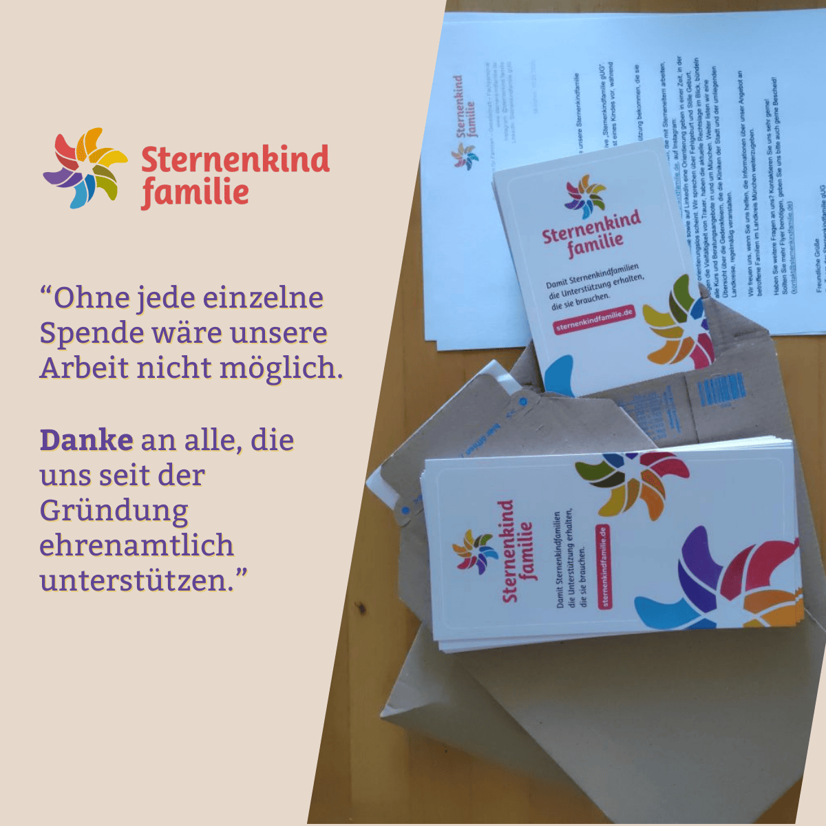 Unsere Arbeit ist von Herzen ehrenamtlich und doch fallen Kosten an, etwa das Porto unserer letzten Buchverlosung. Auch du kannst uns mit deiner Spende helfen: damit Sternenkindfamilien die Unterstützung erhalten, die sie brauchen.